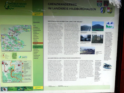 Informationsschilder stehen nahe der ehemaligen Grenze.